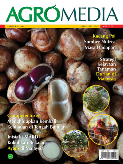 Dalam edisi ini, kami tampilkan pelbagai artikel menarik yang mencerminkan kepelbagaian dan kemajuan sektor pertanian negara. Antara sorotan utama ialah rencana khas mengenai kacang Poi, satu sumber protein alternatif yang berpotensi menjadi makanan masa hadapan dan artikel Canopytecture, inovasi landskap hijau yang membawa semula kehijauan ke tengah kota. Turut menjadi tumpuan ialah strategi kejayaan tanaman durian, yang menjadi kebanggaan negara di peringkat antarabangsa, serta inisiatif MARDI dalam memperkukuhkan bekalan ayam demi menjamin sekuriti makanan nasional. Bagi pencinta ilmu dan sains pertanian, pelbagai artikel rencana umum disajikan termasuk mengenai somaklonal buah nanas MD2, fungsi antioksida sebagai pengumpul radikal bebas serta beberapa artikel mengenai khasiat tumbuhan seperti moringa, halia bara dan keladi yang sarat dengan nilai perubatan tradisional. Tidak ketinggalan, artikel berkaitan kesan racun perosak terhadap mikroorganisma tanah dan pencemaran atmosfera memperluaskan perbincangan tentang kelestarian alam sekitar. Dalam segmen inovasi, pembaca akan didedahkan kepada pelbagai teknologi baharu seperti serbuk mulberi sebagai ramuan makanan, potensi ekstrak mengkudu dalam mencegah penyakit kanser durian serta sistem integrasi tanaman dalam kebun buah-buahan tropika matang. Bidang ternakan pula membincangkan teknologi dalam pengurusan perindukan anak ayam, sinkronisasi estrus dan paparan maklumat pertumbuhan lembu tempatan seperti KK, KK Elit dan Brakmas. Edisi ini turut mengetengahkan kemajuan dalam pengkomersialan teknologi, selari dengan Tahun Pengkomersialan Malaysia yang memacu inovasi ke arah kesejahteraan ekonomi dan pertanian mampan. Pelbagai kisah kejayaan diketengahkan termasuklah eksport nanas MD2 ke pasaran antarabangsa, inovasi makanan seperti kiub kimchi segera, pes cili boh dan serbuk jus tebu serta inovasi produk 2 dalam 1 madu kelulut dan sarang burung walit.